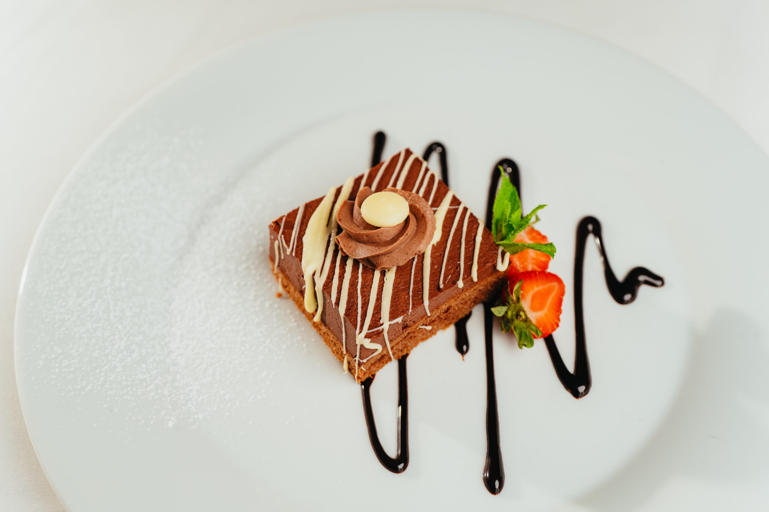 Kakaoschnitte mit weißer Schokolade, Vanilleeis