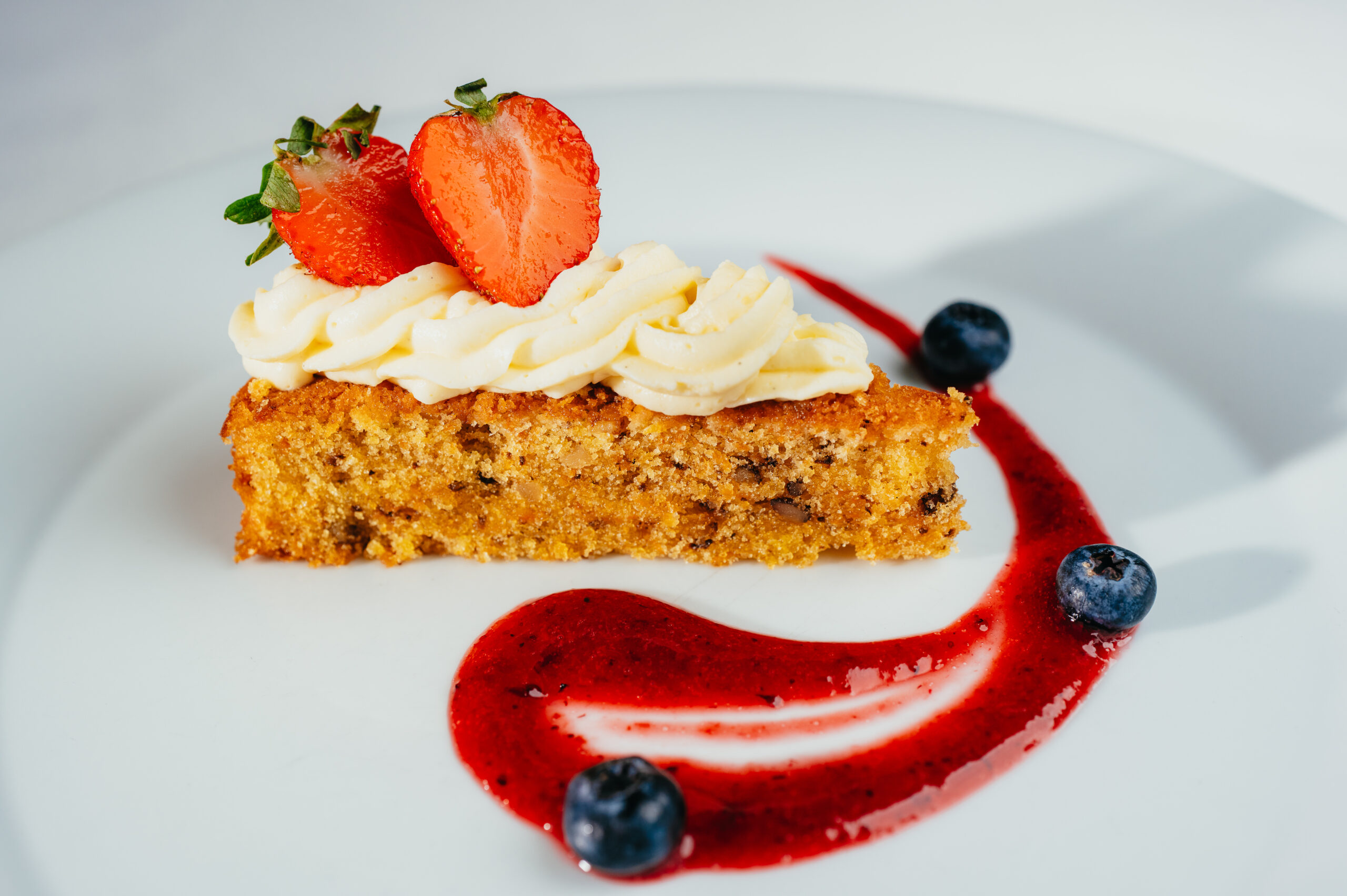 1 Gebackenes Filet von der Regenbogenforelle, Süßkartoffelpüree, Kräuterbutter