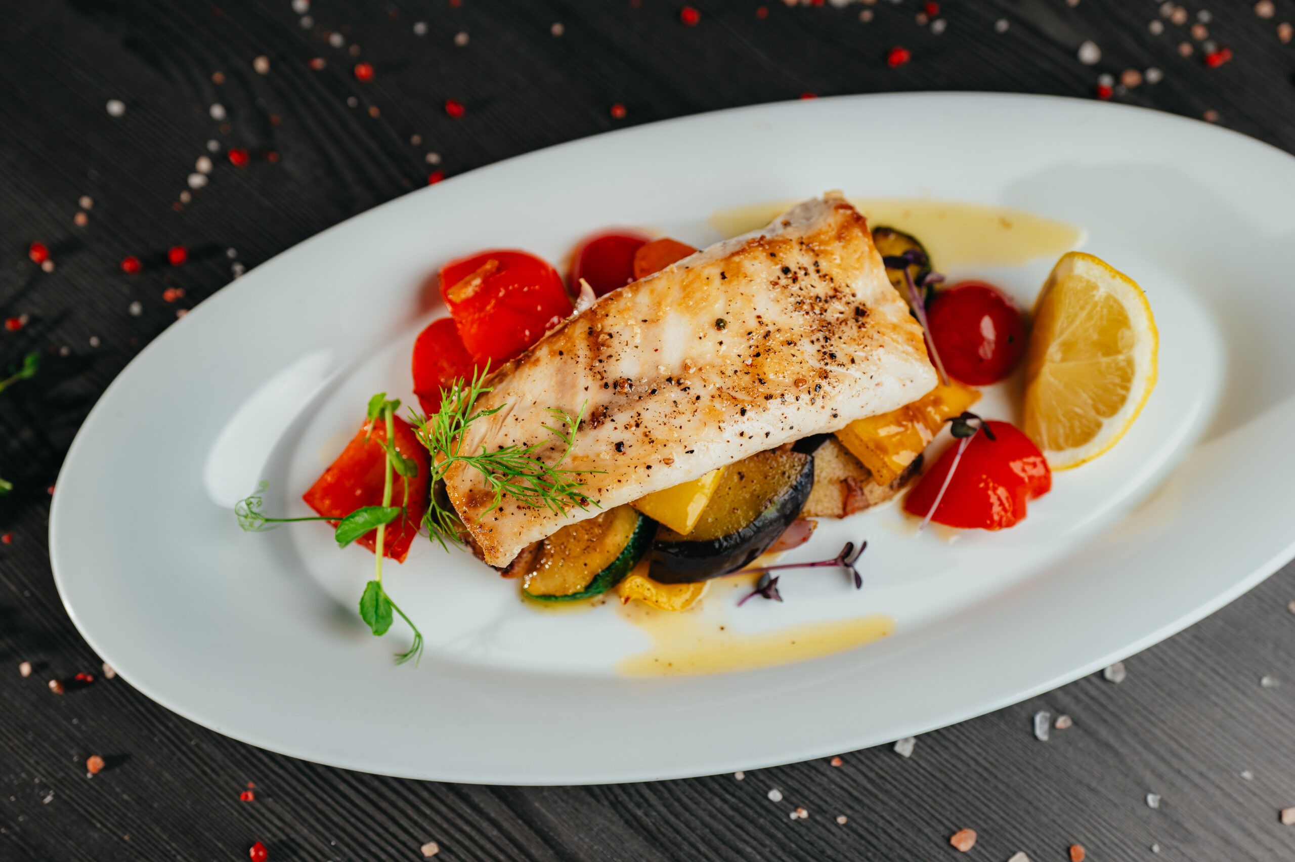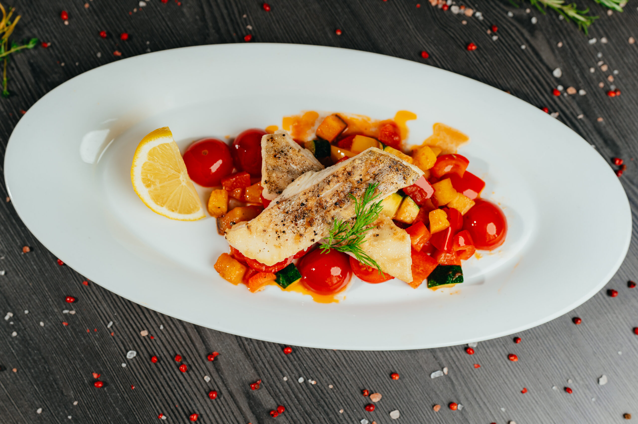 2 Gegrillter Barsch, gegrilltes mediterranes Gemüse