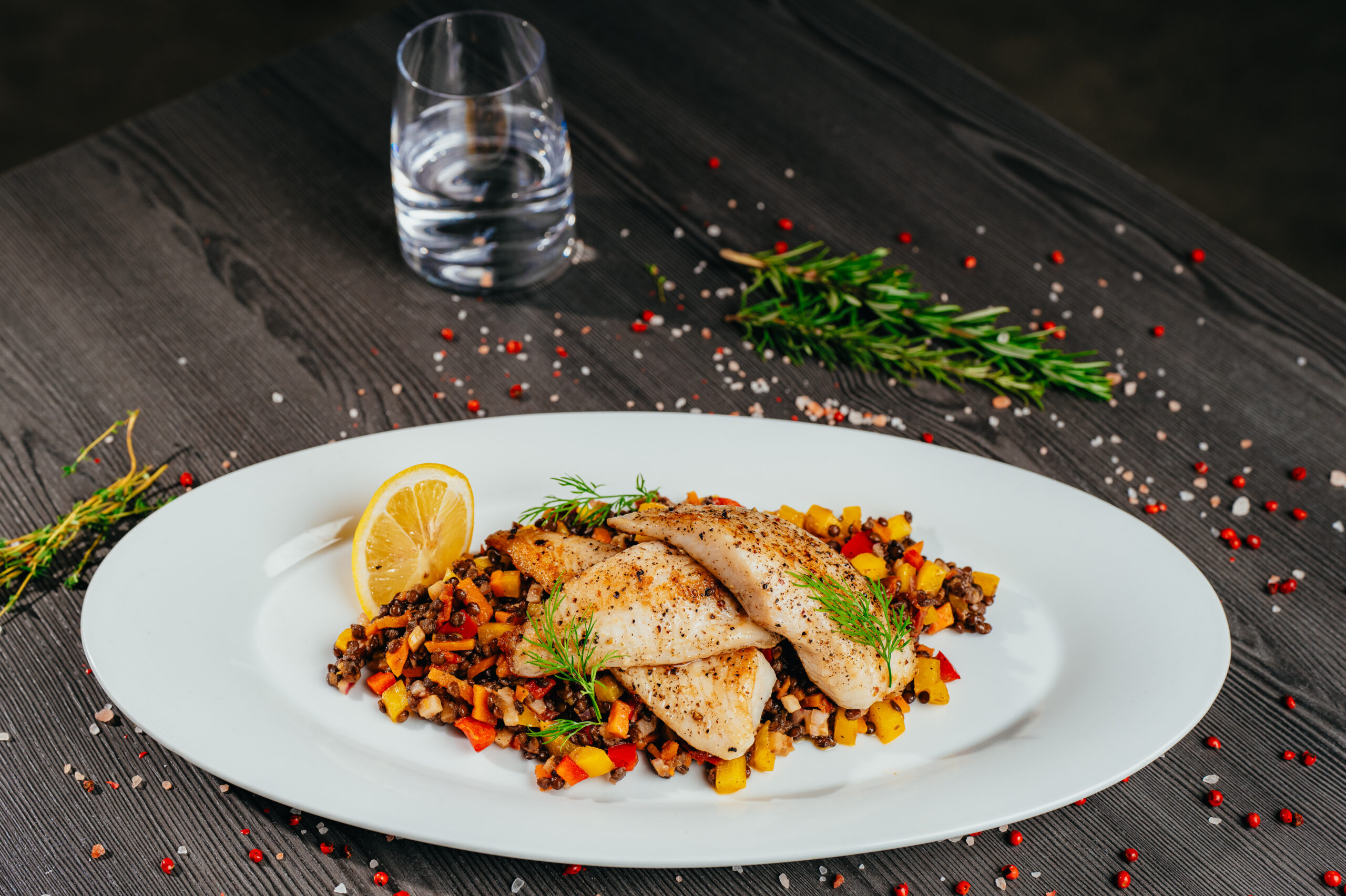 2 Grilled sea bass, grilled Mediterranean vegetables