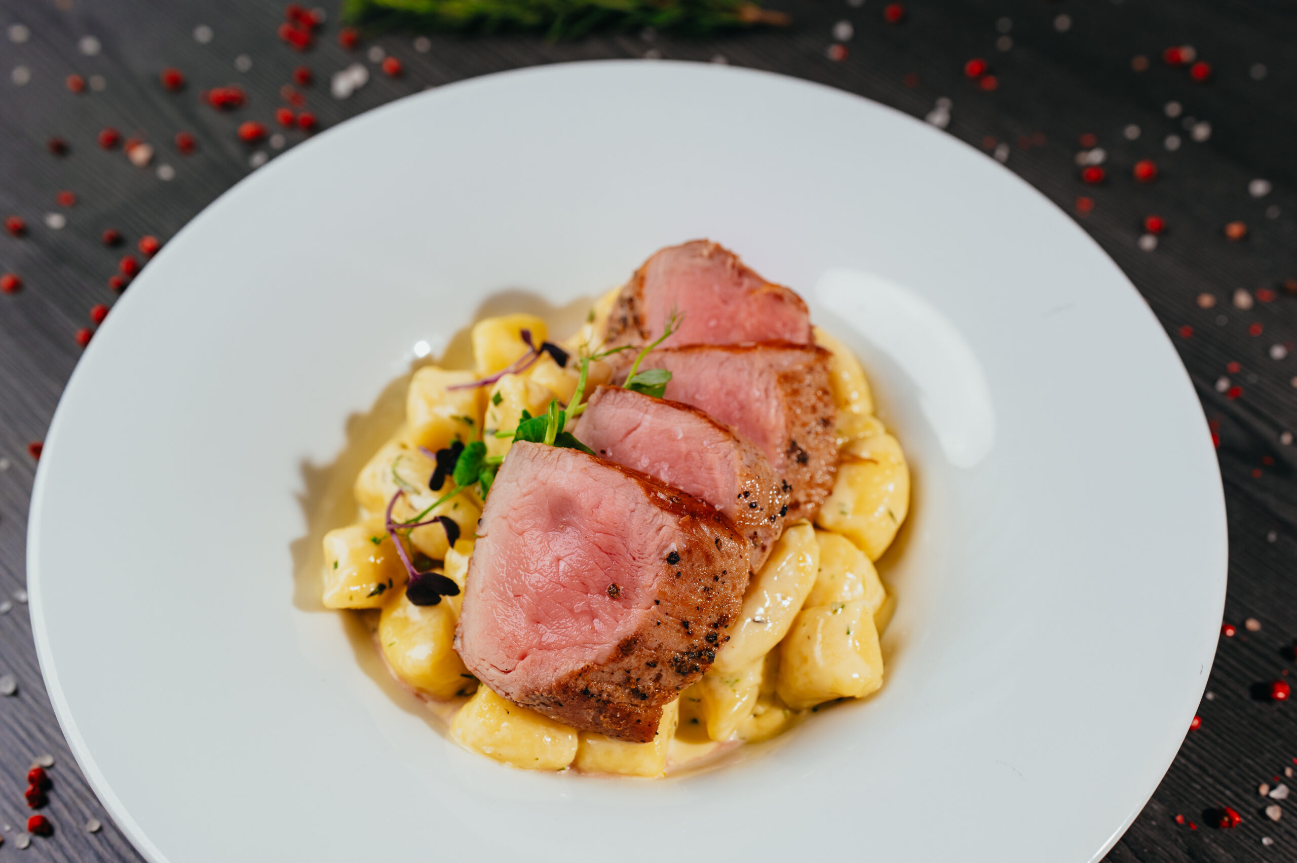 2 Grilled pork tenderloin, potato gnocchi with herbs and cream