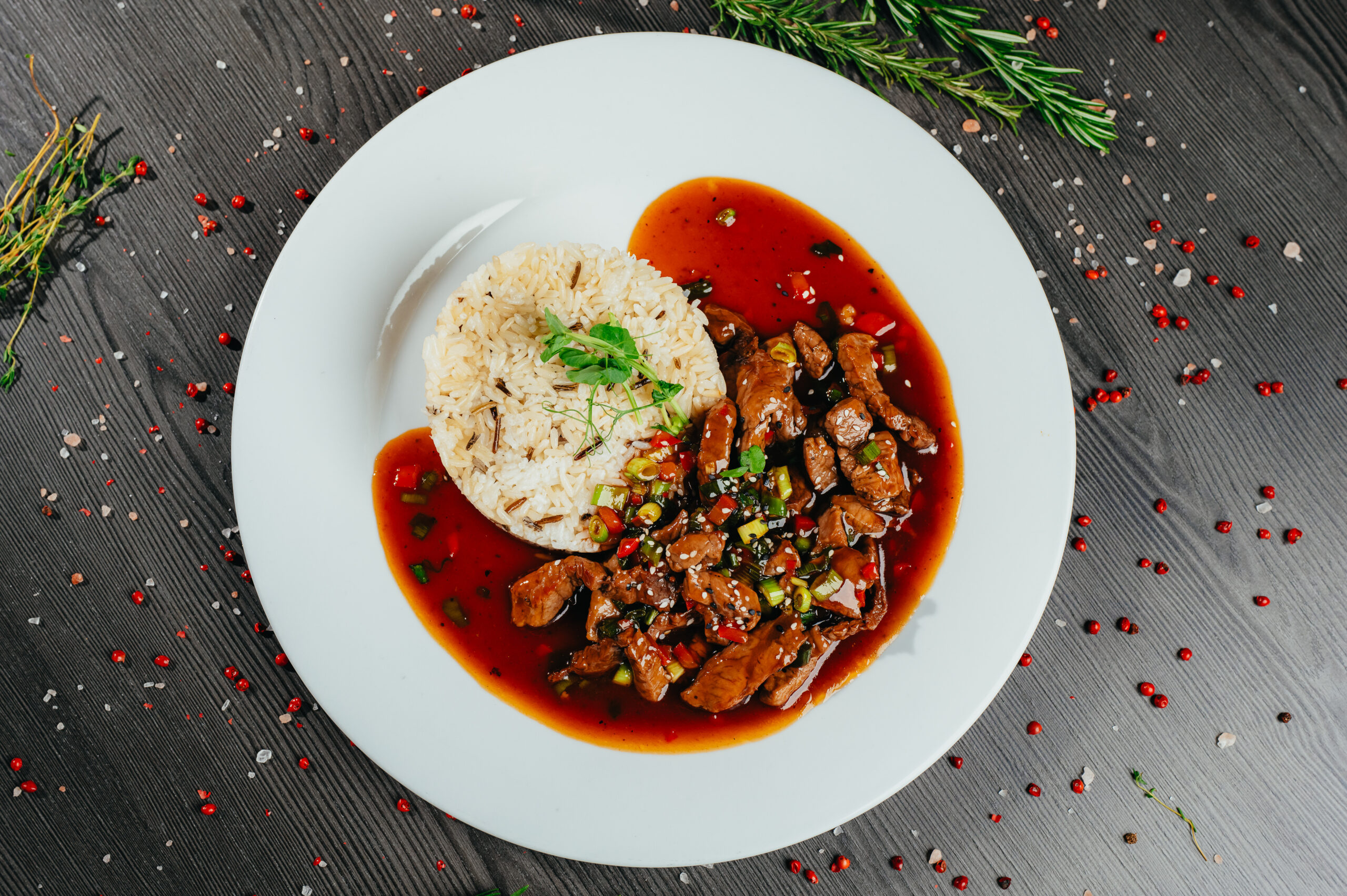 1 Hovězí nudličky teriyaki, divoká rýže