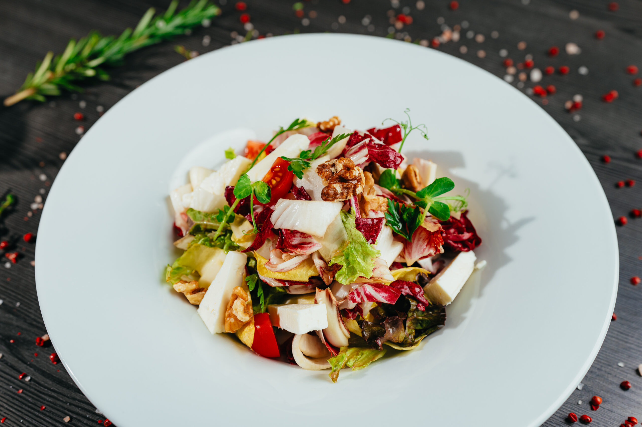 Čekankový salát s feta sýrem a ořechy