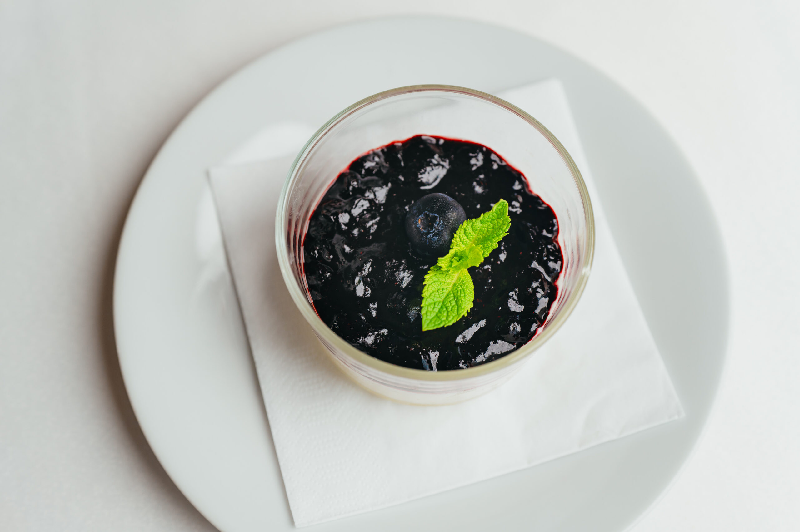 Panna cotta s borůvkami a mátou