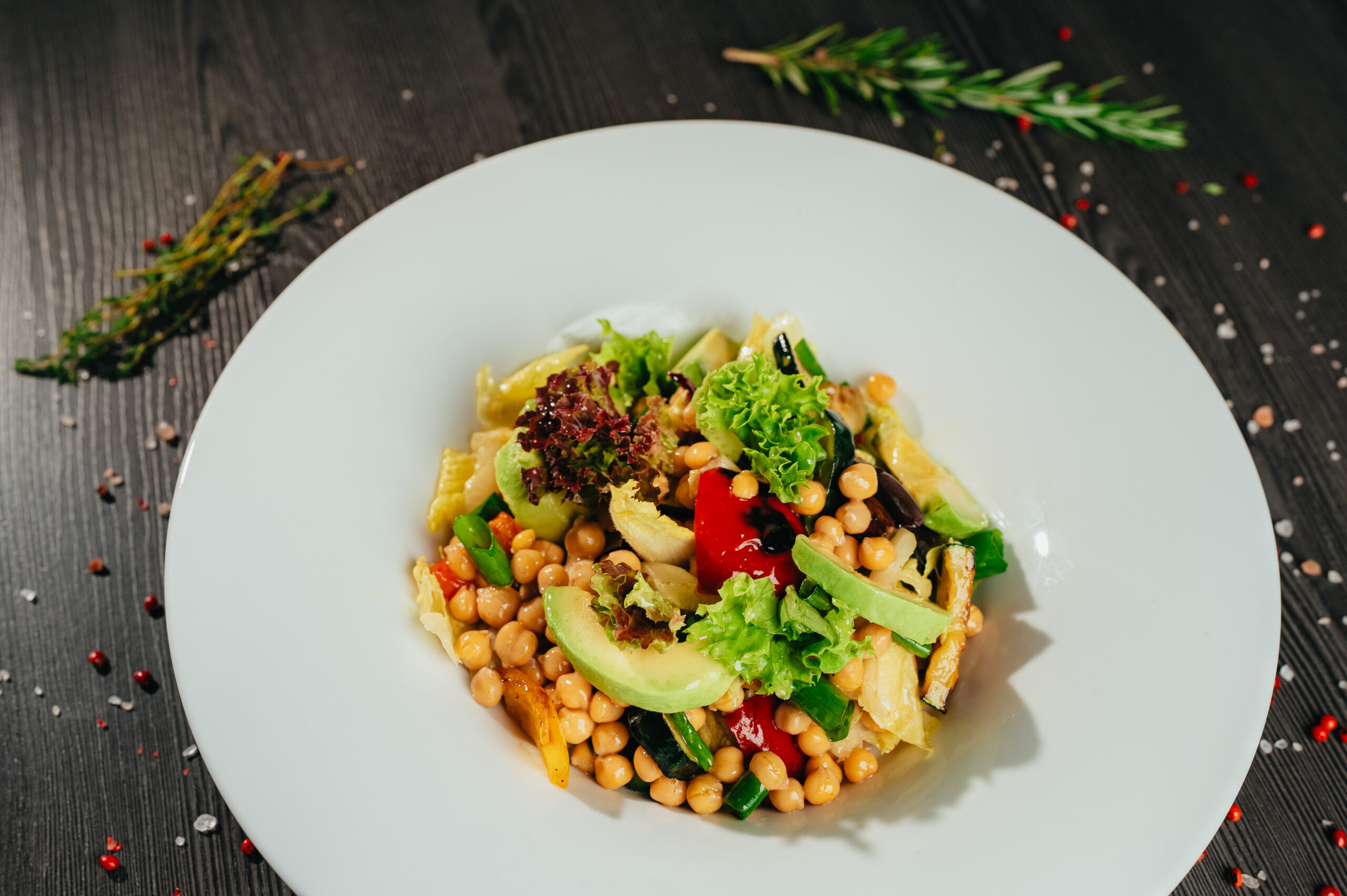 Cizrnový salát s pečenou zeleninou a avokádem