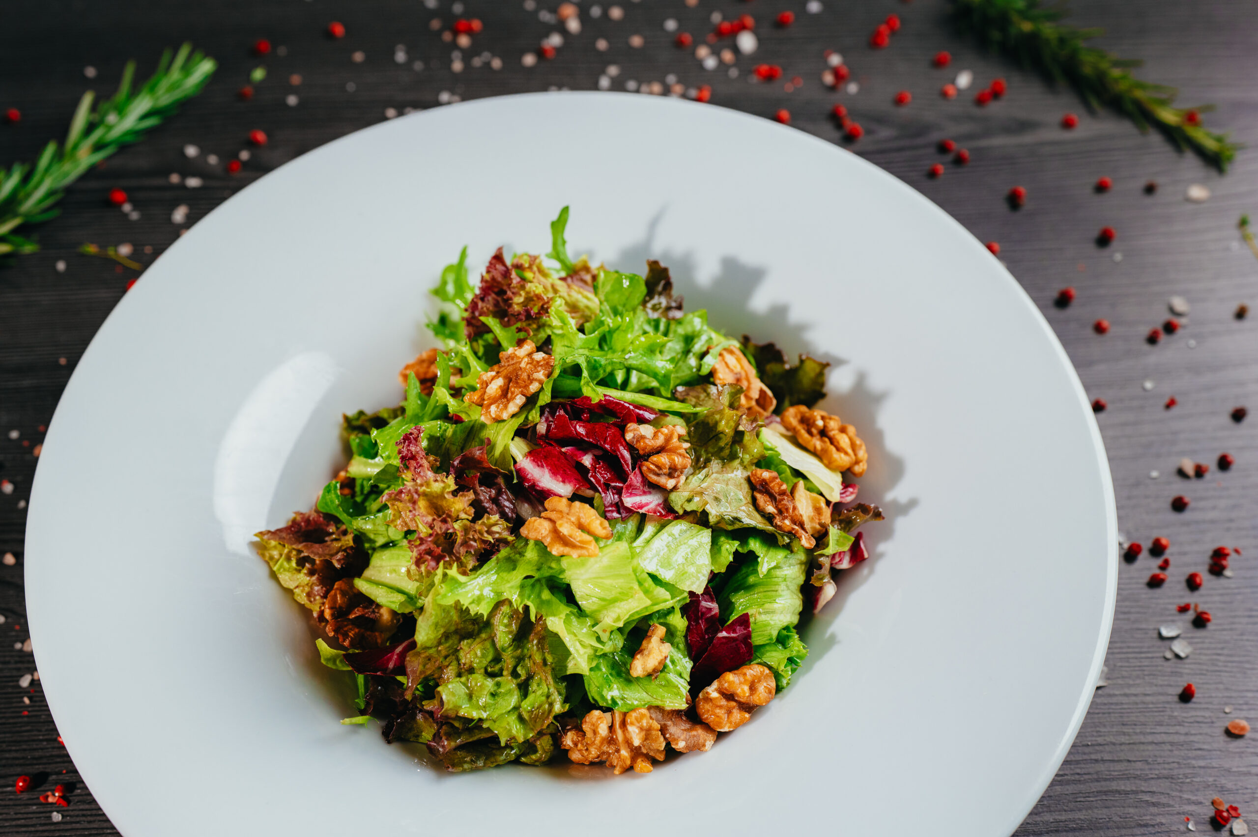 Listové saláty s marinovanými ořechy v medu