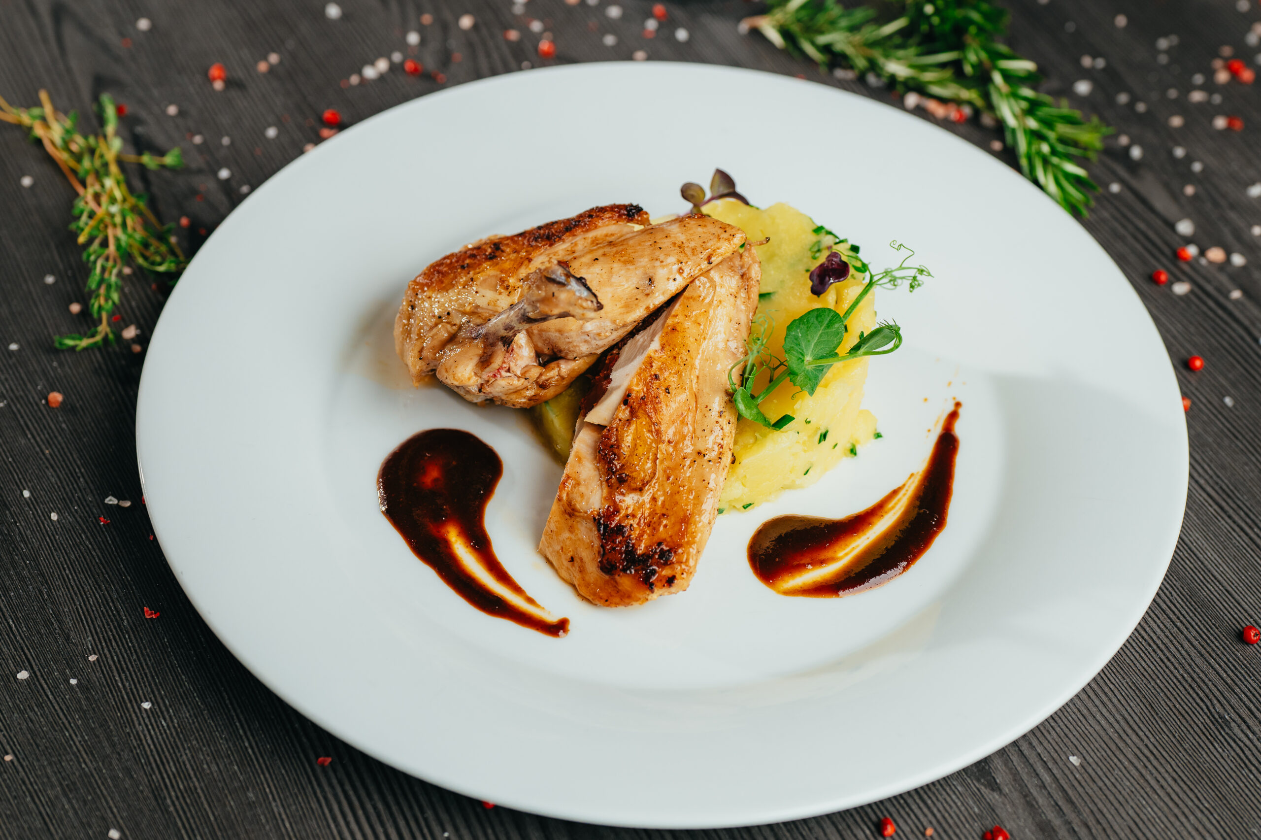 1 Pečený kuřecí supreme, sušená rajčata, mačkané brambory