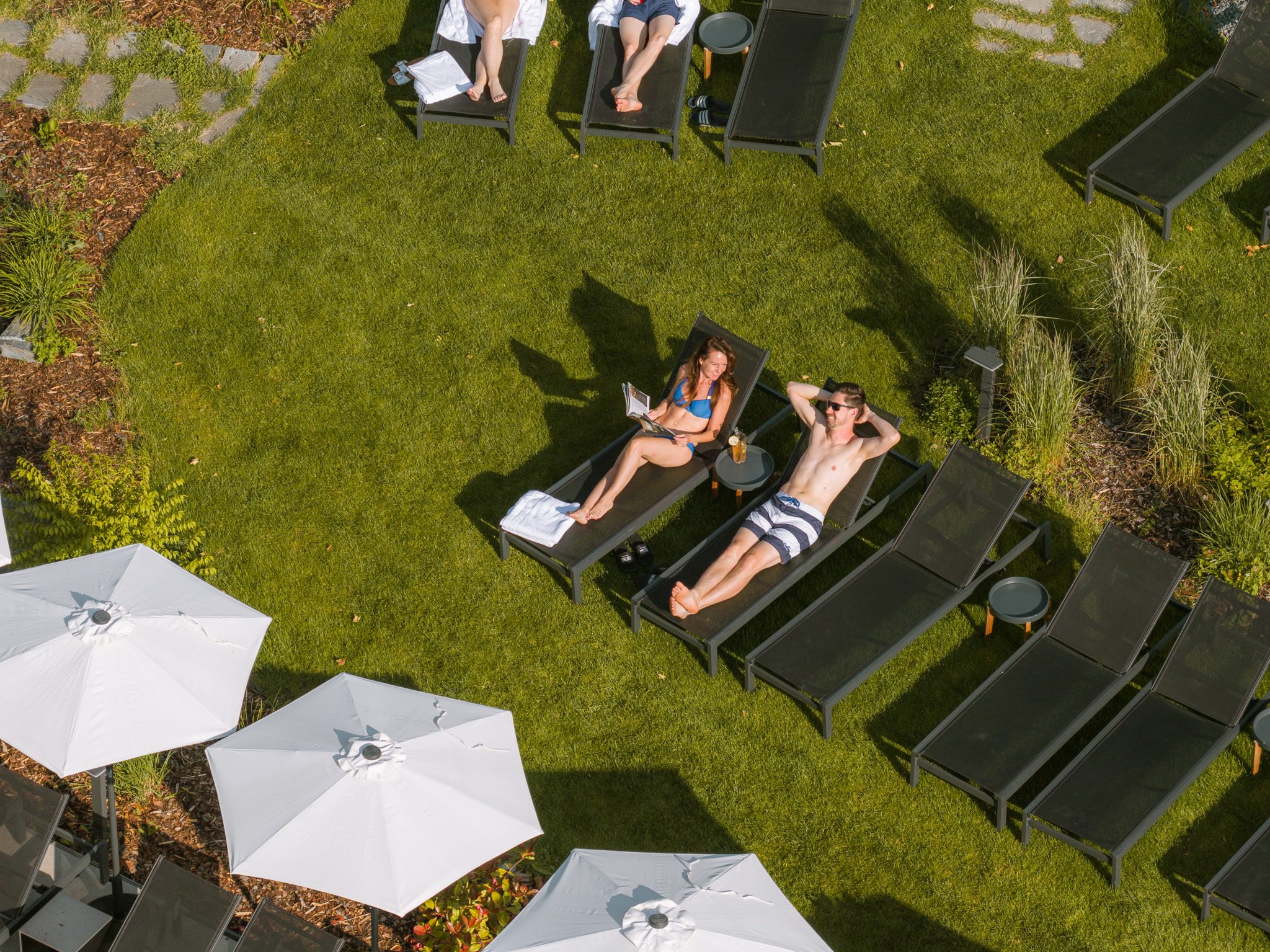 Odpočinout si můžete také v panoramatické odpočívárně s knihovnou a pohodlnými lehátky, ze kterých si můžete vychutnat výhled na novou ceremoniální saunu.