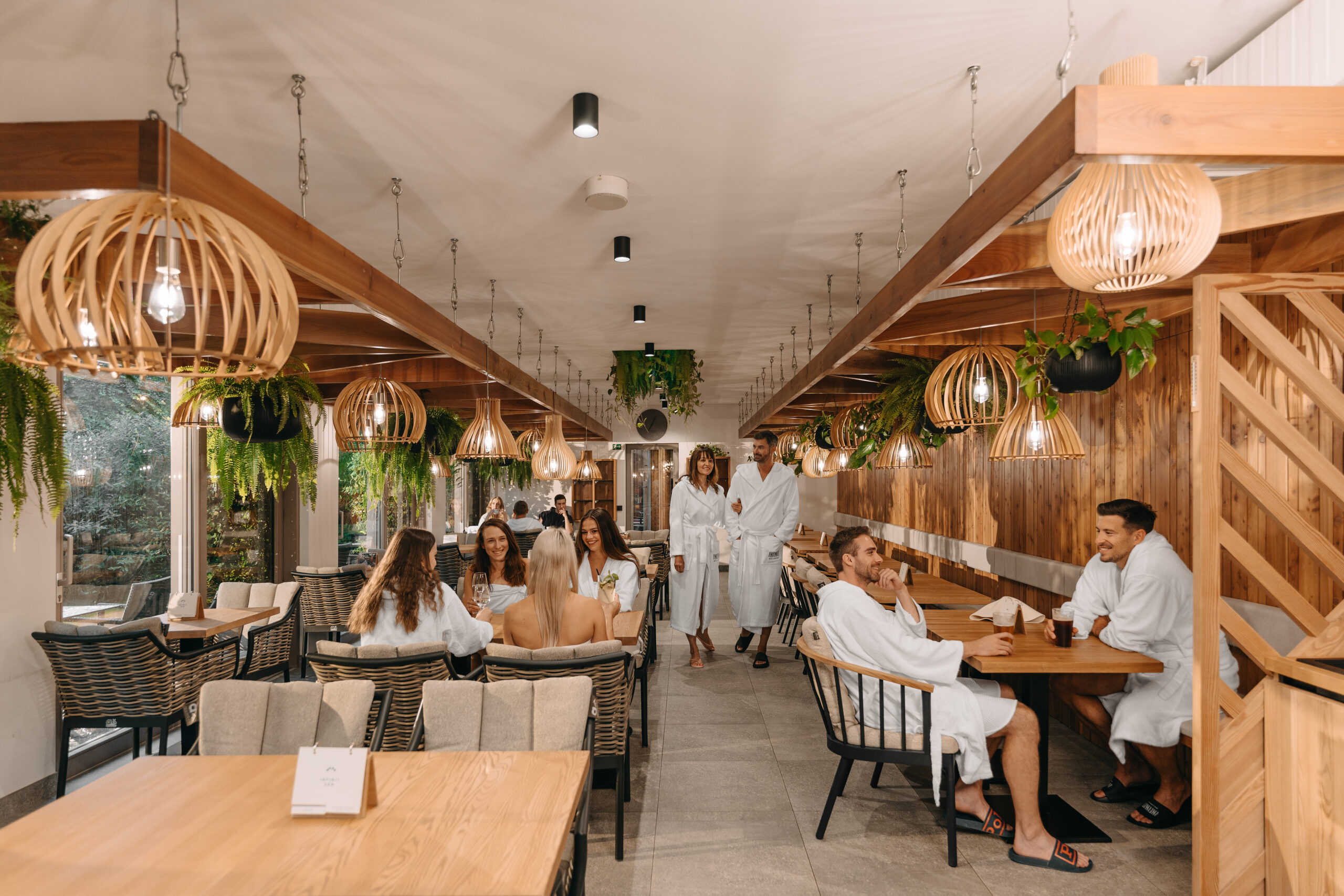 V areálu wellness se nacházejí tři bary, které zpříjemní váš pobyt. Dva fresh bary jsou ideální pro krátkou pauzu i pohodové posezení. V nabídce najdete lehké občerstvení jako polévky, sendviče, tortilly, saláty, chlebíčky, sladké dobroty, domácí limonády, nealkoholické osvěžení i lehké alkoholické drinky. Skutečným unikátem je bar na hladině, který je otevřen celoročně přímo v bazénu a umožňuje vychutnat si nápoj ve vodě.